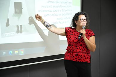 Durante su participación abordó qué es lo que se entiende como espacio público, los mecanismos existentes para la participación de las mujeres, los retos en la representación de las mujeres, así como las oportunidades desde el estudiantado.