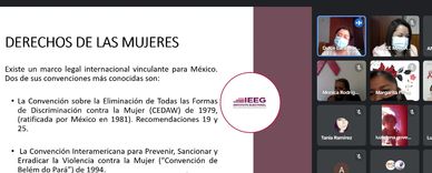 La Licda. Anabel Pulido López, presidenta del Observatorio presentó ante la Red Nacional de Candidatas a un cargo de Elección Popular en el Ámbito Estatal para dar seguimiento a los casos de violencia política contra la mujer en razón de género en el proceso electoral 2020-2021 (RED), impulsada en Guanajuato por el IEEG, la Guía para la atención de la violencia política contra las mujeres en razón de género, con la finalidad de dar a conocer a las candidatas adheridas a la RED, esta herramienta que les permite identificar y denunciar la violencia.